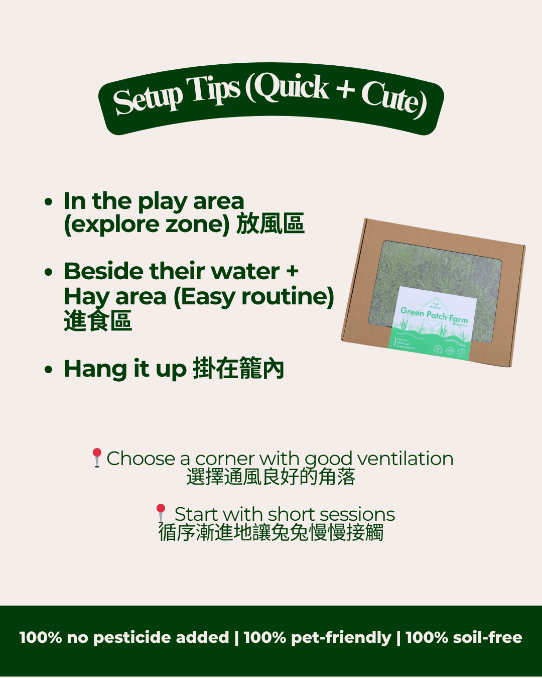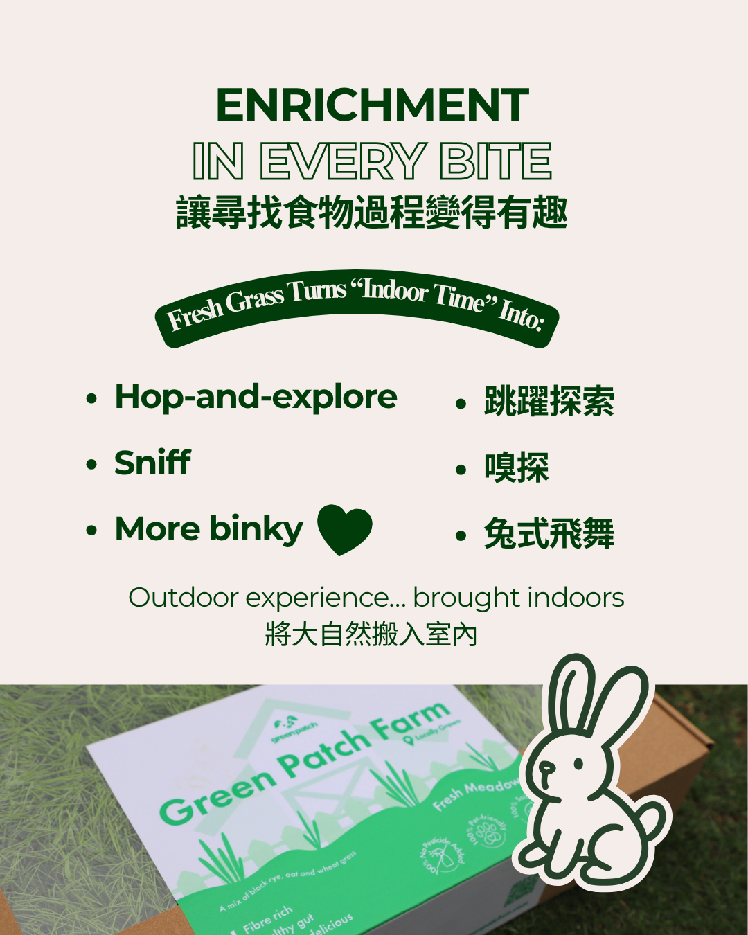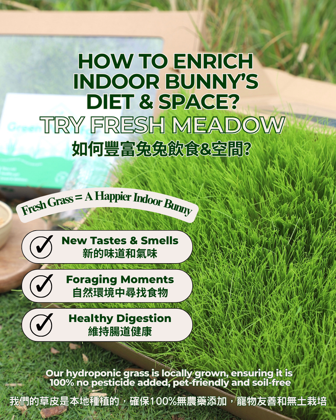 我們深知毛孩們對新鮮綠草的渴望!Bunny Style 為您們隆重呈獻來自**香港 Green Patch Farm** 的【Fresh Meadow 小寵物黑麥草X燕麥草 草皮】!這款新鮮草皮不僅為您的小寶貝提供最天然的美味,更是豐富牠們生活環境、促進身心健康的最佳選擇!🌱✨