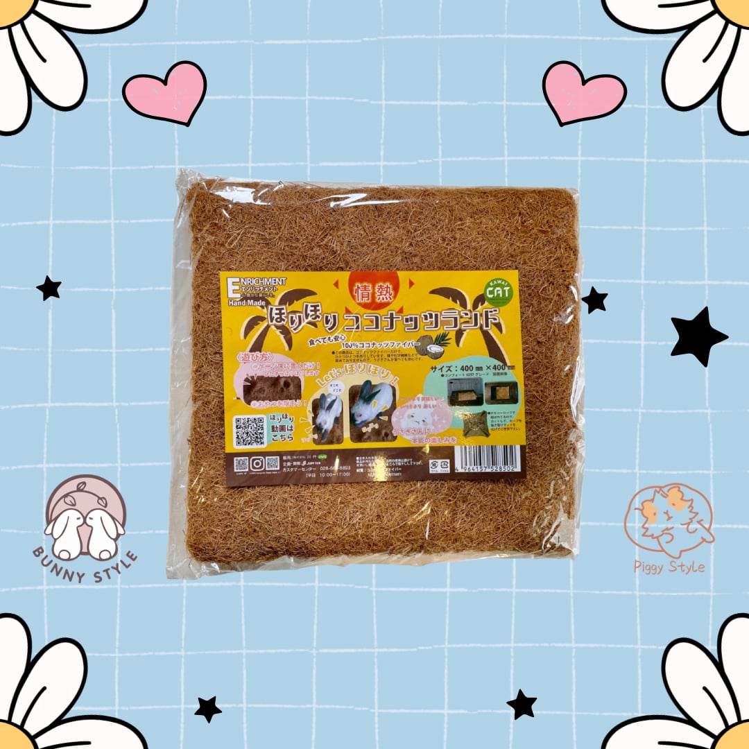 是一款100%使用ココナッツファイバー(椰子纖維)製作的天然玩具。 不含糊料、化學纖維或防腐劑,完全天然安全,兔子可挖掘玩耍並食用。 適合取代地板墊,提供兔子挖掘樂趣,深受歡迎的熱門玩具。