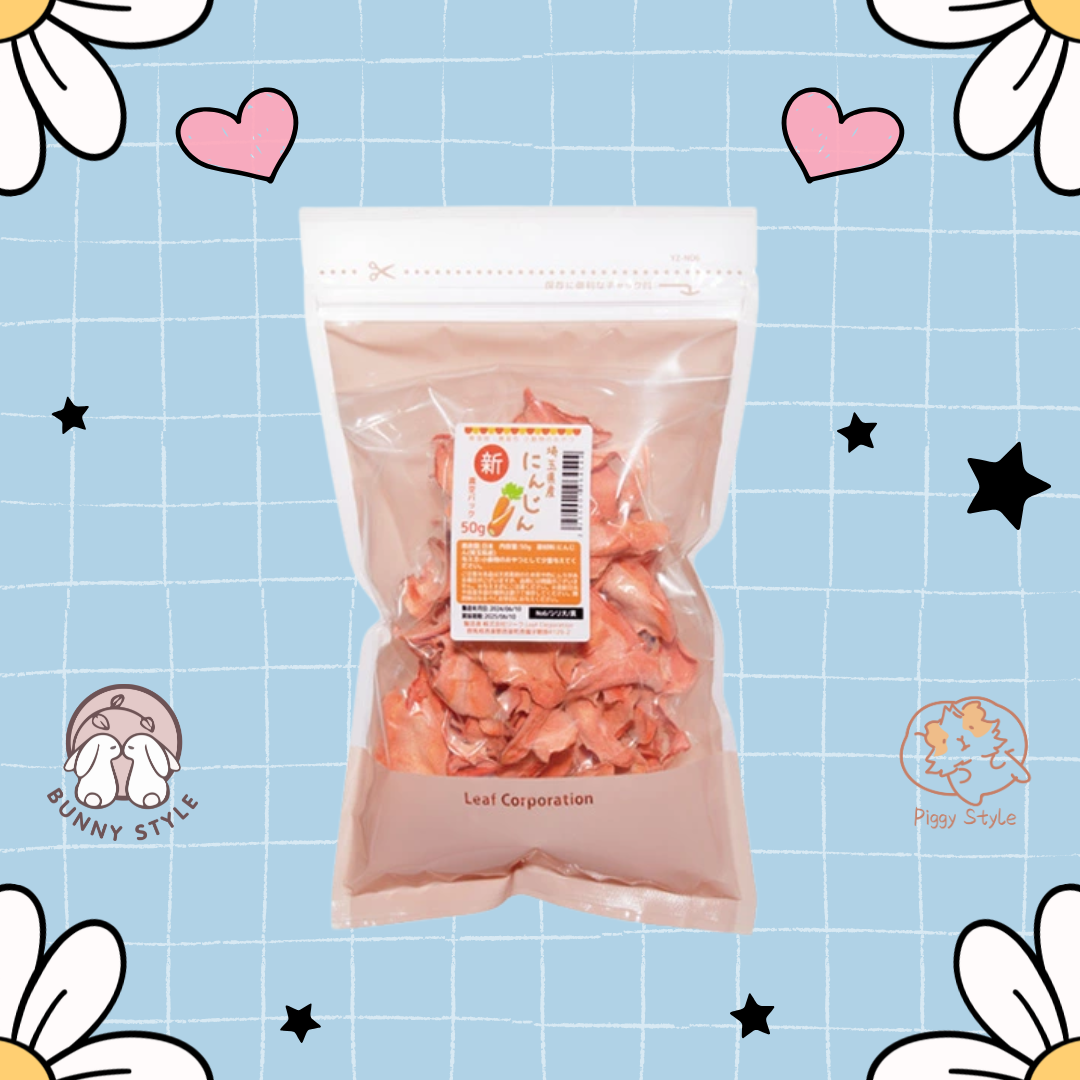 嚴選埼玉縣認證特別栽培紅蘿蔔,與簽約農家合作種植,香氣濃郁、味道醇厚。 一年只採收一次,採收期僅一個月,資源極為珍貴,市面流通量非常少。 採用先進低溫乾燥或凍乾技術處理,最大程度保留原始風味與營養,包含豐富的纖維素、維他命A及鉀。 無添加色素、防腐劑與其他人工添加物,保證安全天然,可安心餵飼寵物。 適用對象與主要功效 適合兔子、天竺鼠、倉鼠、龍貓等小動物作為健康零食或日常補充。 有助視力健康、增強免疫力、補充鉀質、促進消化。 胡蘿蔔莖及葉乾亦可有效輔助小動物牙齒護理、防止過度生長。 產品規格及包裝 常見規格有:胡蘿蔔乾片/條(10g、20g、50g),胡蘿蔔葉莖(10g、20g)。 密封夾口包裝,方便保存與分次餵飼。 Leaf Corp埼玉胡蘿蔔以高品質、天然、無添加著稱,是香港及日本寵物主特別推崇的健康零食選擇。