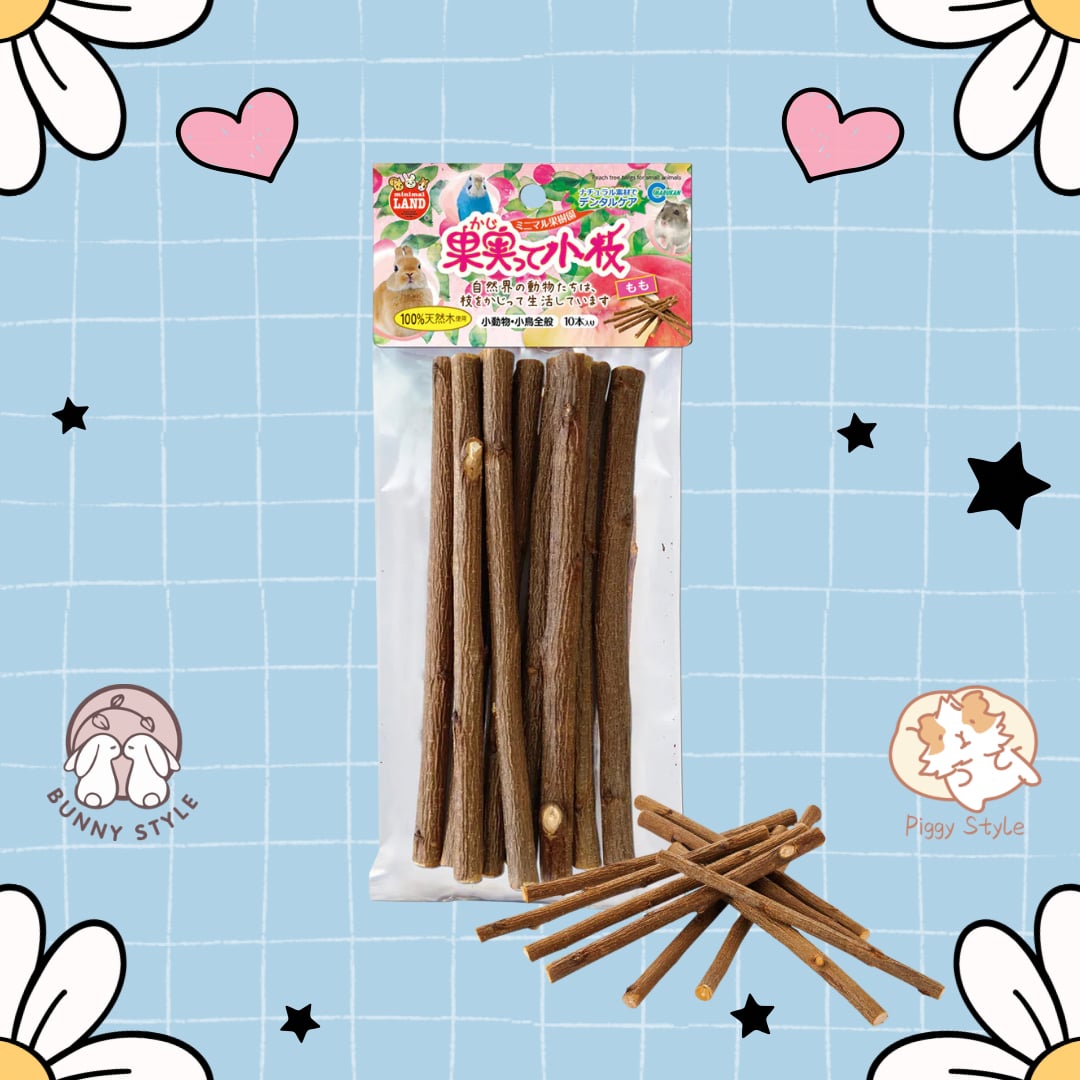 Marukan 桃樹枝 10pcs 是給兔兔、天竺鼠等小動物用的天然磨牙枝,主要功用是幫助磨牙、防止牙齒過長,同時提供啃咬的樂趣和紓壓。