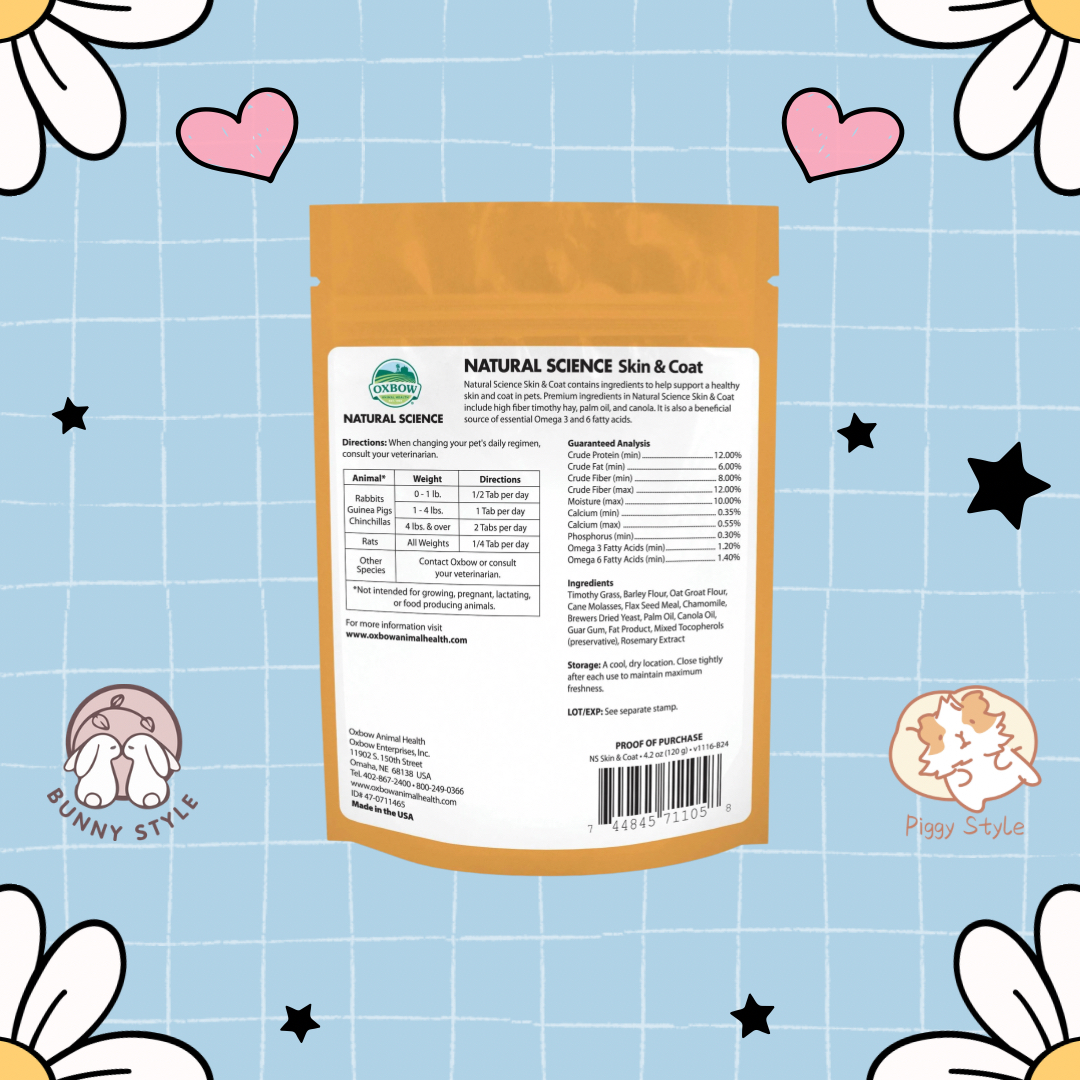 Oxbow NS 皮毛補充劑能有效維護小寵毛髮健康與光澤,含有豐富的 Omega 3 和 6 脂肪酸